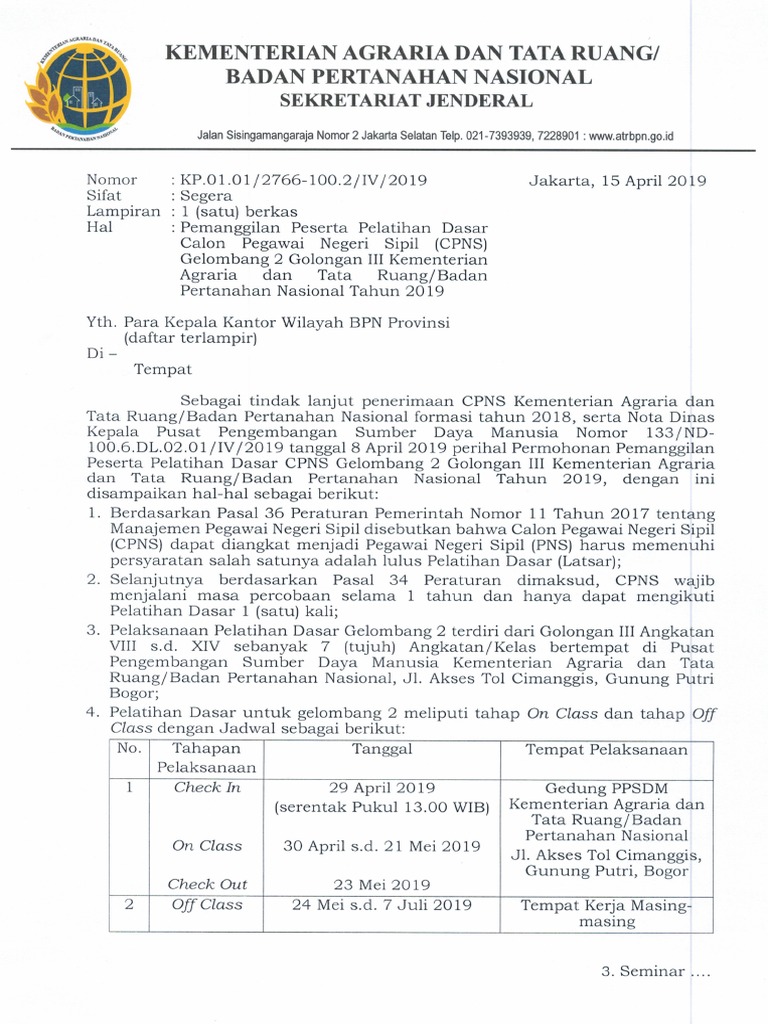 Calon pegawai negeri sipil d3 : Informasi yang diunggah lewat situs resmi kementerian atr/bpn ini menegaskan, pelamar yang dinyatakan lulus seleksi penerimaan cpns akan. Dalam rangka menanti rilis resmi tanggal pendaftaran cpns 2021, berikut kami bagikan suatu keterangan perihal penerimaan calon pegawai negeri sipil di kementerian agraria dan tata ruang republik indonesia tahun 2021. Pendidikan dan latihan gbpp : 75%(4)75% found this document useful (4 votes). Video aktualisasi latsar penjas terbaik cpns kementerian agama sulsel 2019 angkatan xvii th. Kementerian atr/bpn mengalokasikan sebanyak 727 kursi yang terdiri dari 11 formasi jabatan pada seleksi cpns 2019 yang akan datang. Savesave format laporan aktualisasi latsar cpns … Kementerian atr/bpn juga menerima pelamar berlatar sarjana dari ekonomi, sosial dan keuangan. Badan pengembangan sumber daya manusia kementerian pekerjaan umum dan perumahan rakyat. Laporan aktualisasi dan habituasi guru cpns 2019 v 2. 09/07/18disaminasi, laporan, pelatihan dasar cpns. Diploma empat digital theodolit :
